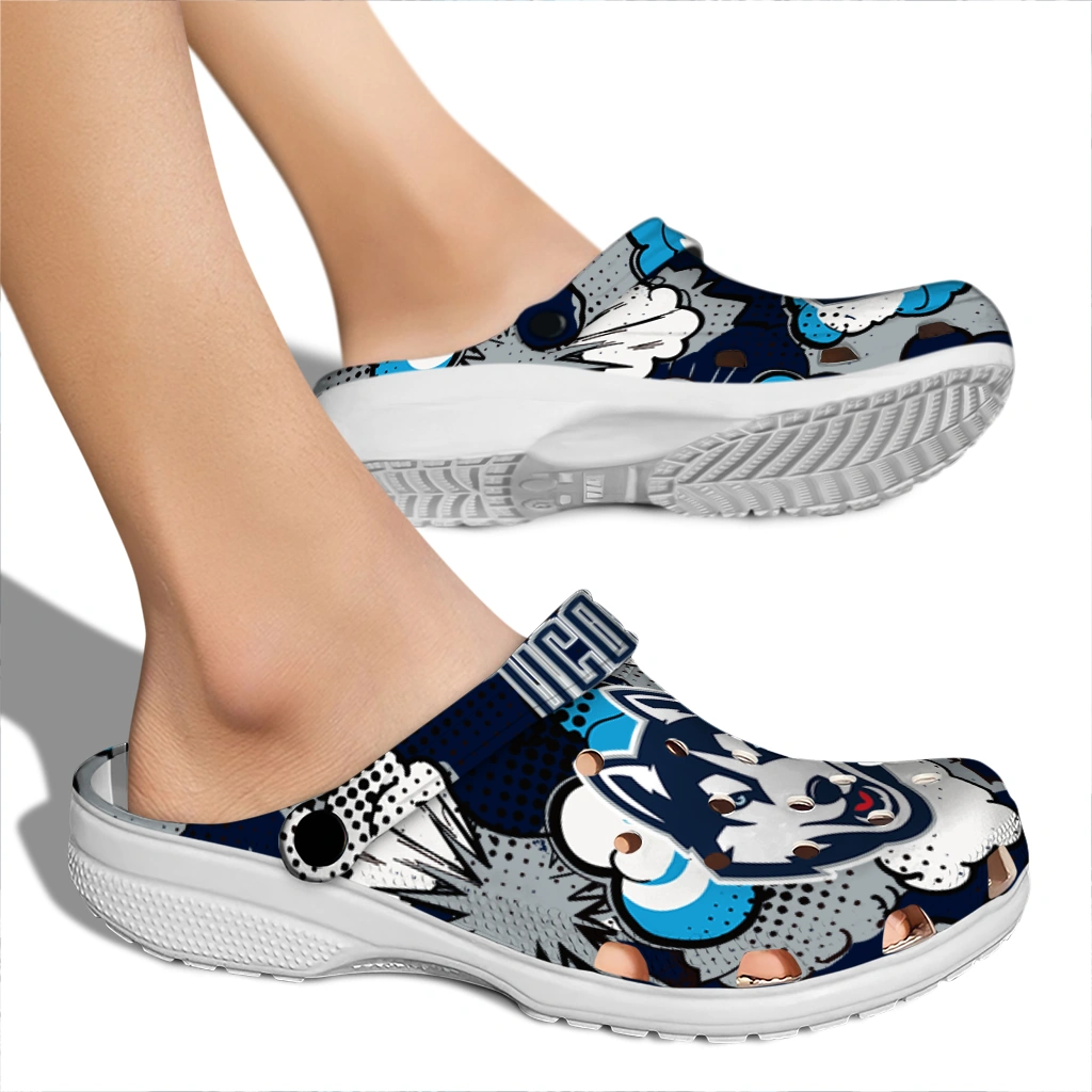 Your Clogs, Your Vibe, Your Name! Custom UConn Huskies Snowy Mountains Clogs from Hey Clogs lets you take sport team-inspired style to a personal level! Featuring the bold colors you love, these featherlight clogs deliver unbeatable, all-day comfort. What a great way to make them truly yours: add your name to the heel strap! Perfect for gifting or treating yourself, these personalized clogs are a fun, spirited way to step out in comfort.