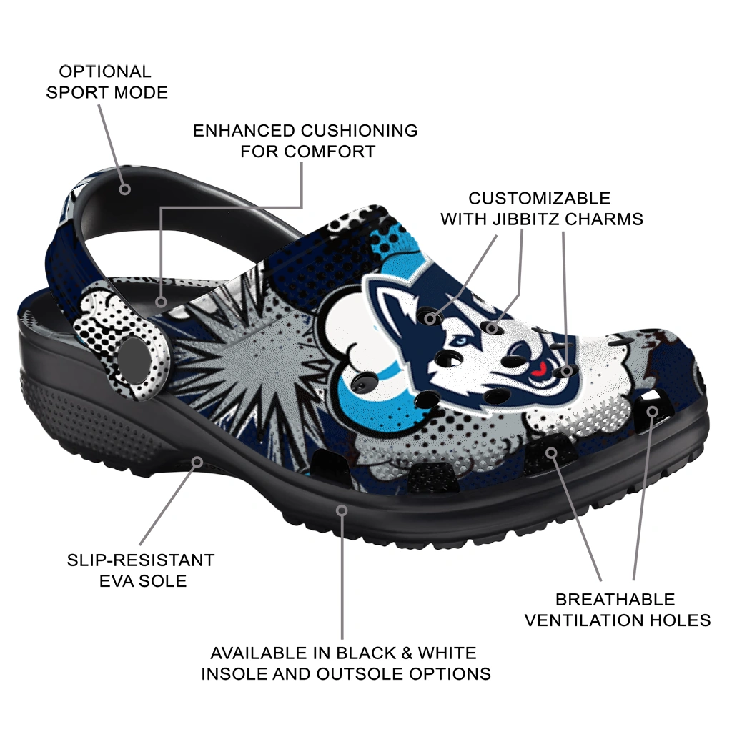 Your Clogs, Your Vibe, Your Name! Custom UConn Huskies Snowy Hills Clogs from Hey Clogs lets you take sport team-inspired style to a personal level! Featuring the bold colors you love, these featherlight clogs deliver unbeatable, all-day comfort. What a great way to make them truly yours: add your name to the heel strap! Perfect for gifting or treating yourself, these personalized clogs are a fun, spirited way to step out in comfort.