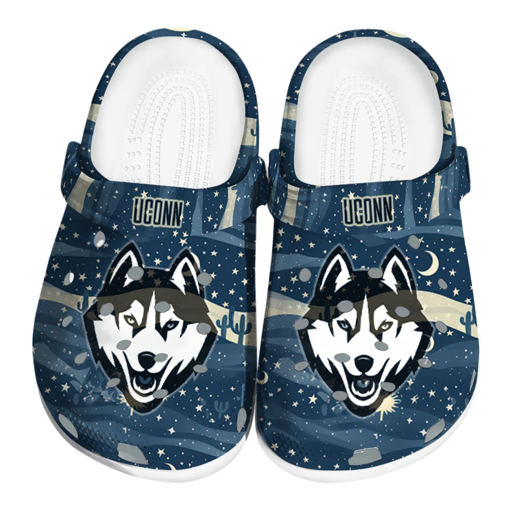 Show your spirit with the ultimate comfort clog! The All-Star Spirit Comfort Clogs – UConn Huskies Night Cactus Clogs are designed to keep pace with your active life while showcasing your love for the game. We've combined featherlight EVA material with bold, team-inspired color patterns! These clogs are a home run for versatility, offering slip-on ease, breezy comfort, and a vibrant look that travels effortlessly from the stadium parking lot to your sofa. What an easy way to cheer on your team!