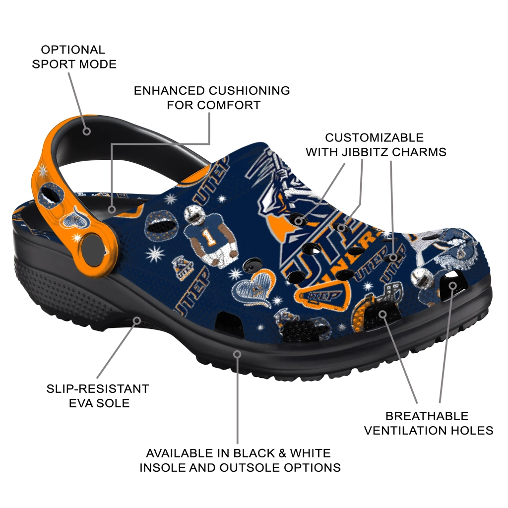 Show your spirit with the ultimate comfort clog! The All-Star Spirit Comfort Clogs – UTEP Miners Football Icons Clogs are designed to keep pace with your active life while showcasing your love for the game. We’ve combined featherlight EVA material with bold, team-inspired color patterns! These clogs are a home run for versatility, offering slip-on ease, breezy comfort, and a vibrant look that travels effortlessly from the stadium parking lot to your sofa. What an easy way to cheer on your team!