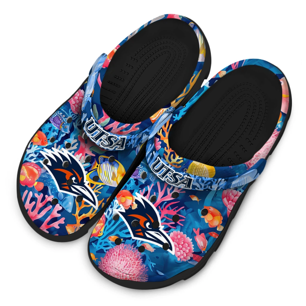 Show your spirit with the ultimate comfort clog! The All-Star Spirit Comfort Clogs – UTSA Roadrunners Ocean Wonders Clogs are designed to keep pace with your active life while showcasing your love for the game. We've combined featherlight EVA material with bold, team-inspired color patterns! These clogs are a home run for versatility, offering slip-on ease, breezy comfort, and a vibrant look that travels effortlessly from the stadium parking lot to your sofa. What an easy way to cheer on your team!