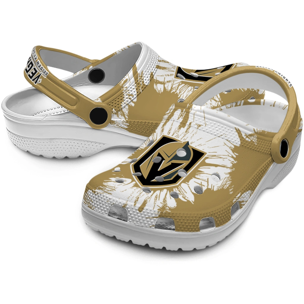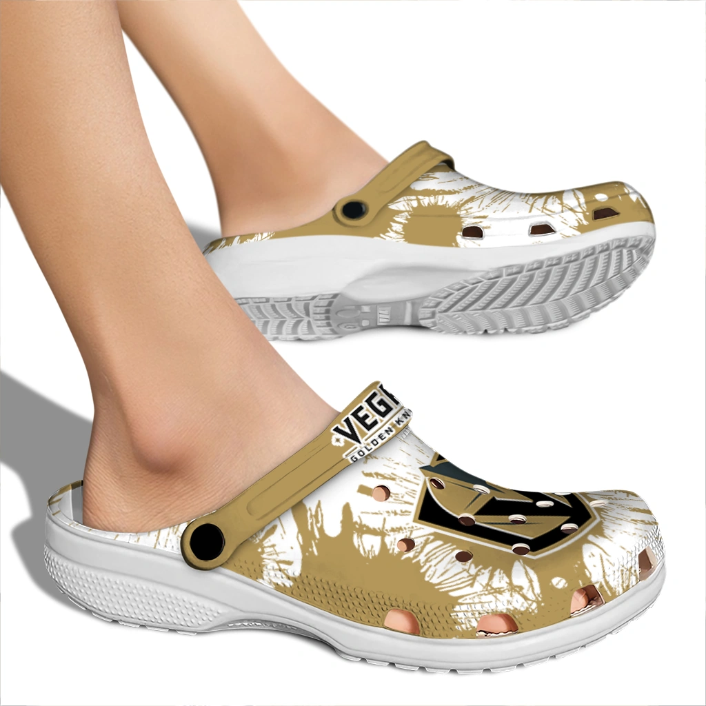 Show your spirit with the ultimate comfort clog! The All-Star Spirit Comfort Clogs – Vegas Golden Knights Splatter Graphics Clogs are designed to keep pace with your active life while showcasing your love for the game. We’ve combined featherlight EVA material with bold, team-inspired color patterns! These clogs are a home run for versatility, offering slip-on ease, breezy comfort, and a vibrant look that travels effortlessly from the stadium parking lot to your sofa. What an easy way to cheer on your team!