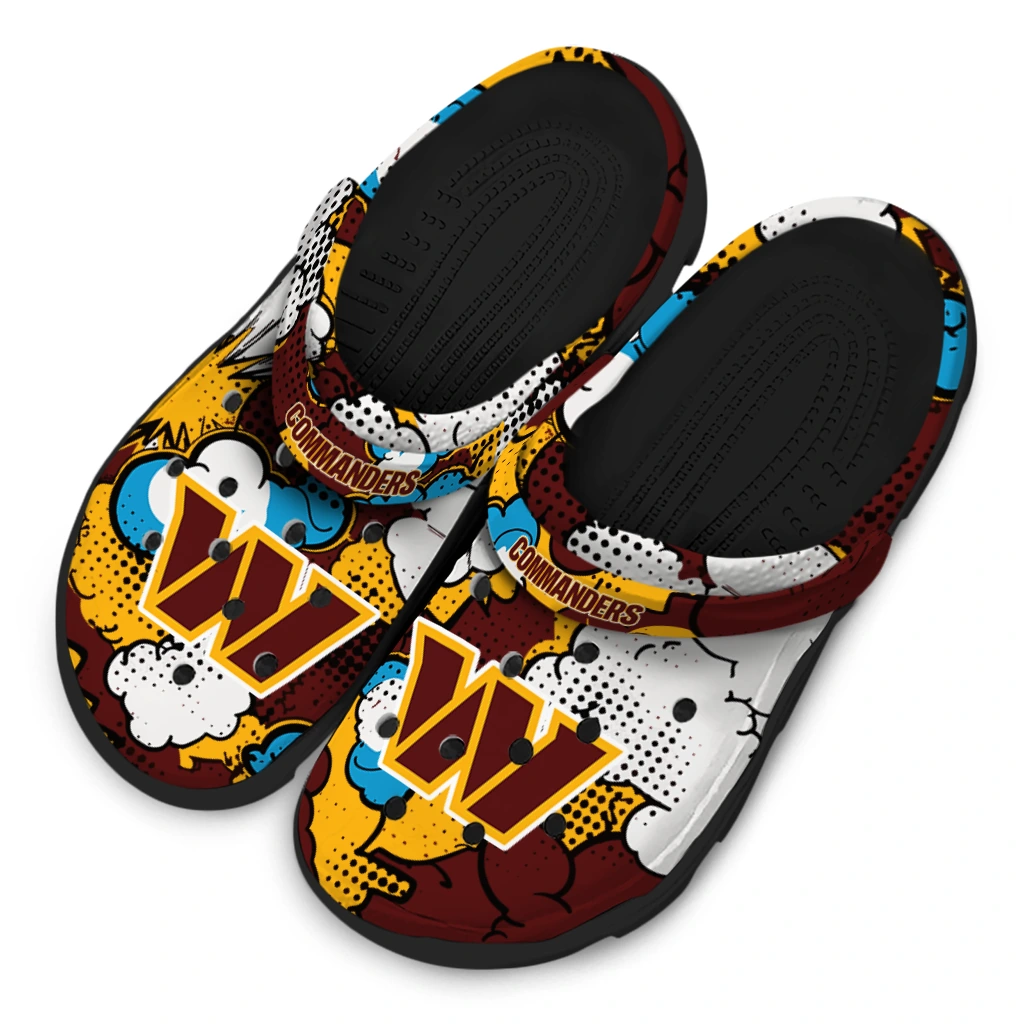 Show your spirit with the ultimate comfort clog! The All-Star Spirit Comfort Clogs – Washington Commanders Cloud Splash Clogs are designed to keep pace with your active life while showcasing your love for the game. We've combined featherlight EVA material with bold, team-inspired color patterns! These clogs are a home run for versatility, offering slip-on ease, breezy comfort, and a vibrant look that travels effortlessly from the stadium parking lot to your sofa. What an easy way to cheer on your team!