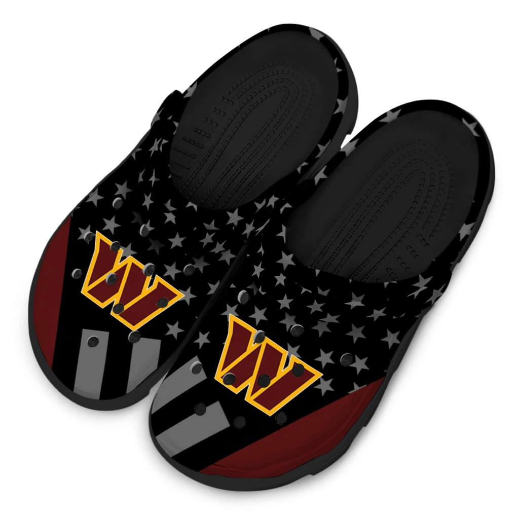 Show your spirit with the ultimate comfort clog! The All-Star Spirit Comfort Clogs – Washington Commanders Stellar Stripes Theme Clogs are designed to keep pace with your active life while showcasing your love for the game. We’ve combined featherlight EVA material with bold, team-inspired color patterns! These clogs are a home run for versatility, offering slip-on ease, breezy comfort, and a vibrant look that travels effortlessly from the stadium parking lot to your sofa. What an easy way to cheer on your team!