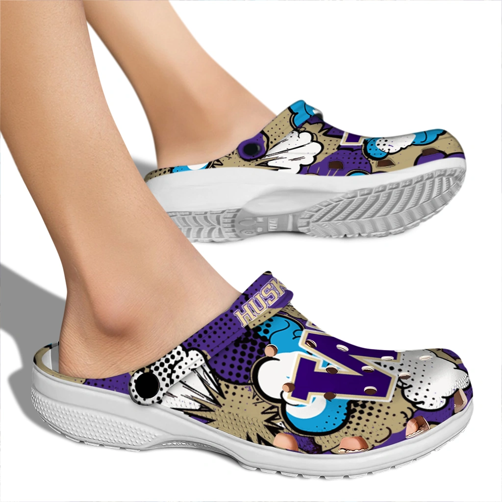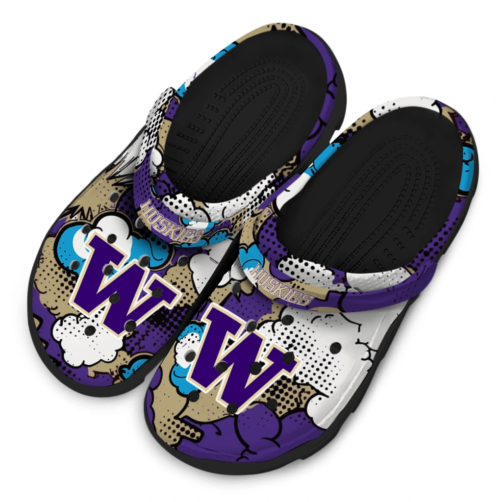 Show your spirit with the ultimate comfort clog! The All-Star Spirit Comfort Clogs – Washington Huskies Cloud Splash Clogs are designed to keep pace with your active life while showcasing your love for the game. We've combined featherlight EVA material with bold, team-inspired color patterns! These clogs are a home run for versatility, offering slip-on ease, breezy comfort, and a vibrant look that travels effortlessly from the stadium parking lot to your sofa. What an easy way to cheer on your team!