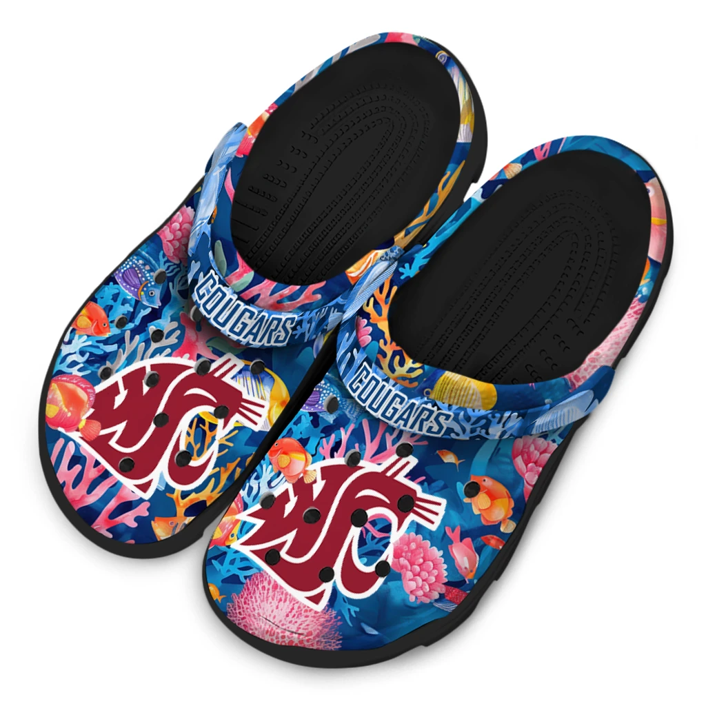 Show your spirit with the ultimate comfort clog! The All-Star Spirit Comfort Clogs – Washington State Cougars Ocean Wonders Clogs are designed to keep pace with your active life while showcasing your love for the game. We've combined featherlight EVA material with bold, team-inspired color patterns! These clogs are a home run for versatility, offering slip-on ease, breezy comfort, and a vibrant look that travels effortlessly from the stadium parking lot to your sofa. What an easy way to cheer on your team!