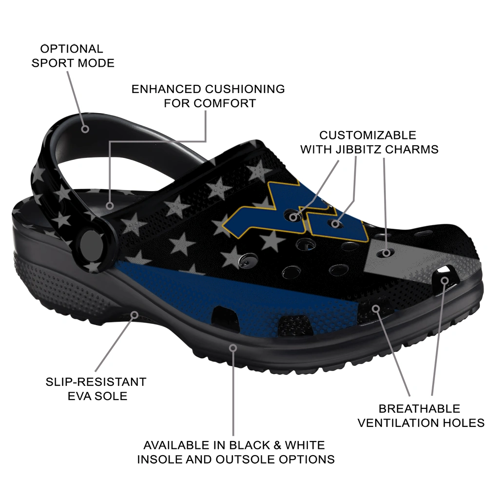 West Virginia Mountaineers Stellar Stripes Theme Clogs