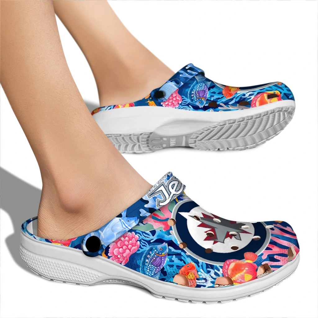 Show your spirit with the ultimate comfort clog! The All-Star Spirit Comfort Clogs – Winnipeg Jets Ocean Wonders Clogs are designed to keep pace with your active life while showcasing your love for the game. We've combined featherlight EVA material with bold, team-inspired color patterns! These clogs are a home run for versatility, offering slip-on ease, breezy comfort, and a vibrant look that travels effortlessly from the stadium parking lot to your sofa. What an easy way to cheer on your team!