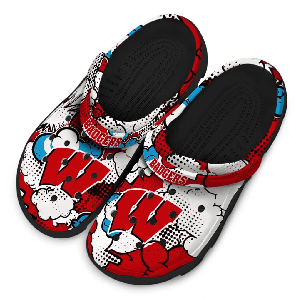 Show your spirit with the ultimate comfort clog! The All-Star Spirit Comfort Clogs – Wisconsin Badgers Cloud Splash Clogs are designed to keep pace with your active life while showcasing your love for the game. We've combined featherlight EVA material with bold, team-inspired color patterns! These clogs are a home run for versatility, offering slip-on ease, breezy comfort, and a vibrant look that travels effortlessly from the stadium parking lot to your sofa. What an easy way to cheer on your team!