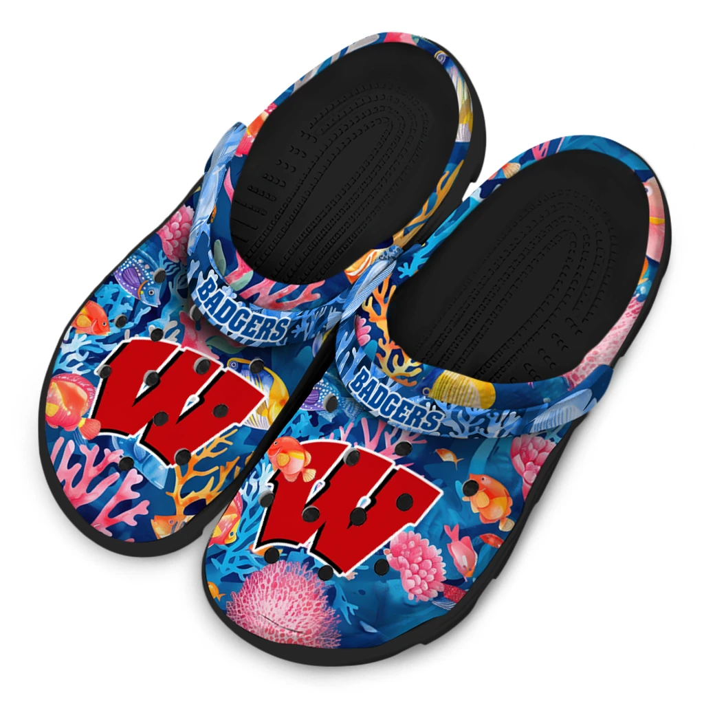 Show your spirit with the ultimate comfort clog! The All-Star Spirit Comfort Clogs – Wisconsin Badgers Ocean Wonders Clogs are designed to keep pace with your active life while showcasing your love for the game. We've combined featherlight EVA material with bold, team-inspired color patterns! These clogs are a home run for versatility, offering slip-on ease, breezy comfort, and a vibrant look that travels effortlessly from the stadium parking lot to your sofa. What an easy way to cheer on your team!